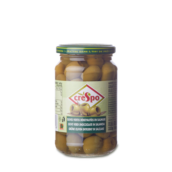 Grüne Oliven entkernt in Salzlake